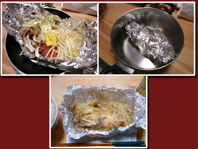 蒸気が逃げないように、しっかりアルミホイルをつつむ。
