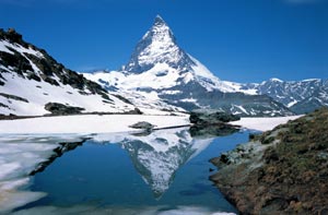 雪解けでできた小さな池には、高い空が美しく映っていた。