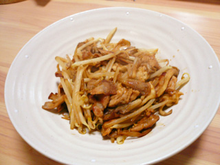 ▼3.まいたけに油が絡んできたら、もやしを加えていためる。