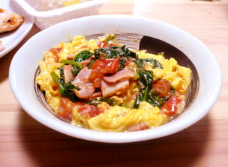 オムレツにしようとしたら具が多くなったので、スクランブルエッグに・・・。